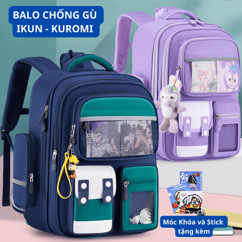 BALO CHỐNG GÙ IKUN - KUROMI CHO BÉ TRAI, BÉ GÁI TỪ LỚP 1- LỚP 6, CHẤT LIỆU POLYESTER CHỐNG THẤM NƯỚC, LỚP LÓT VẢI D600 PHẢN QUANG PHÁT SÁNG BAN ĐÊM - BH KIDS